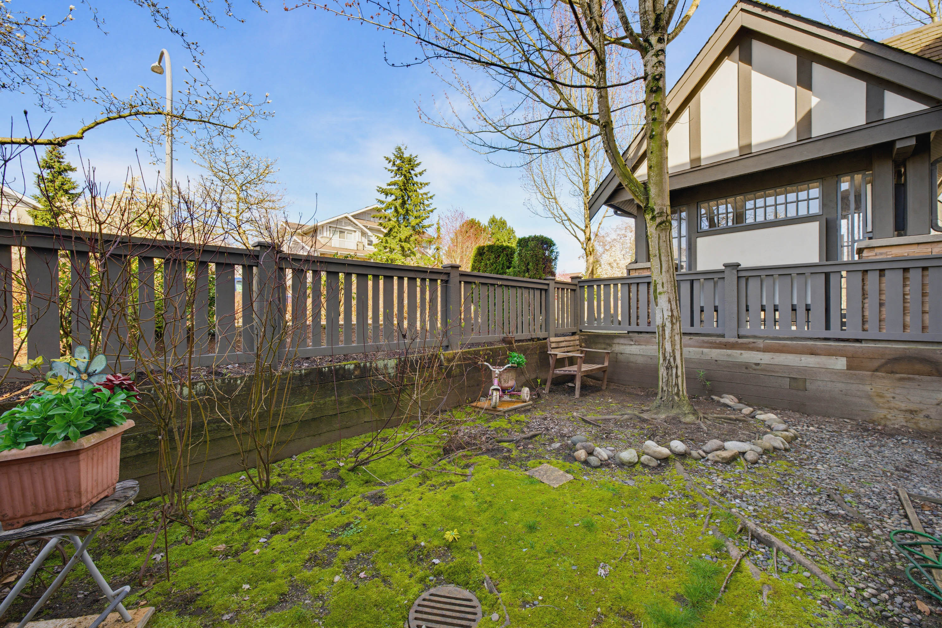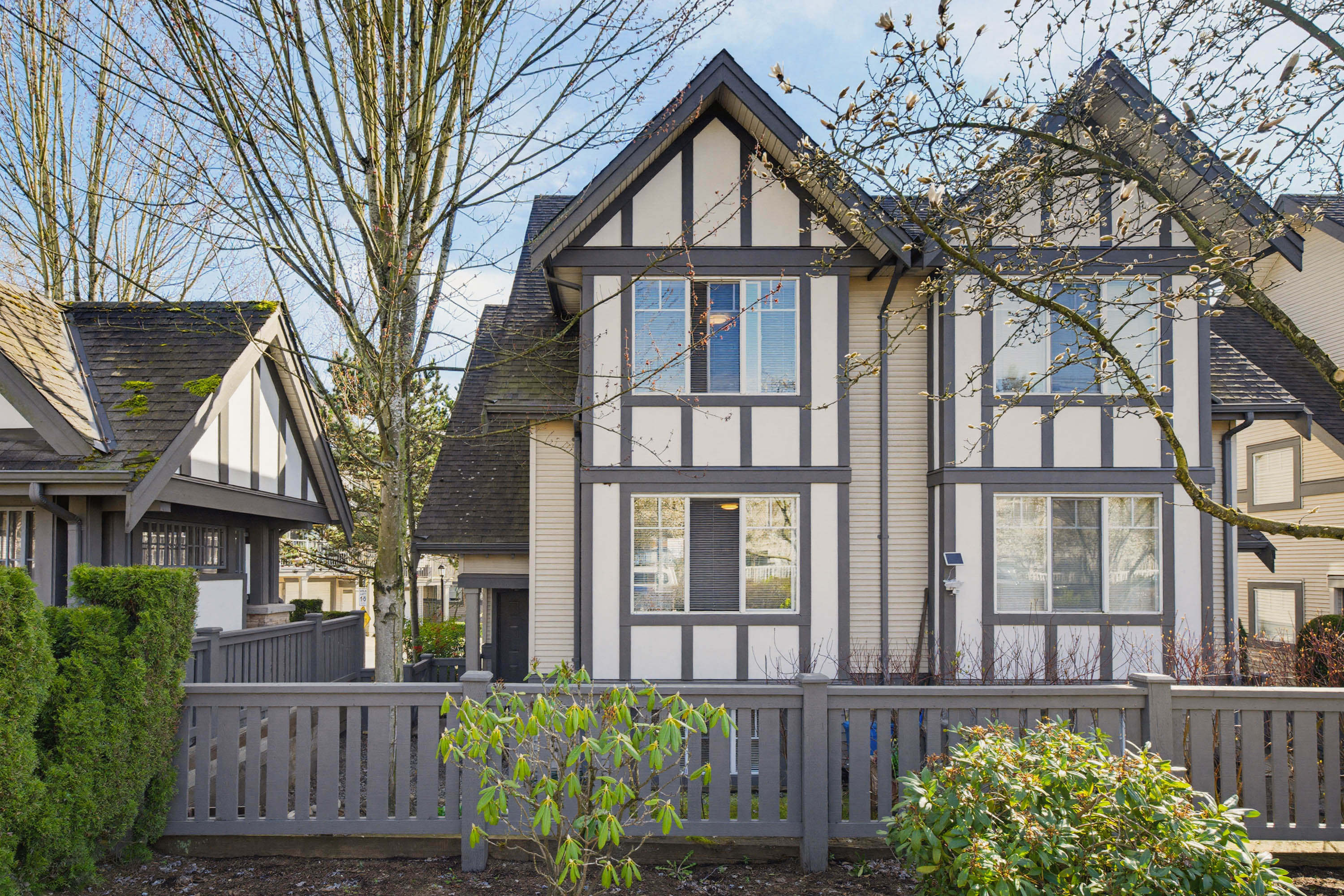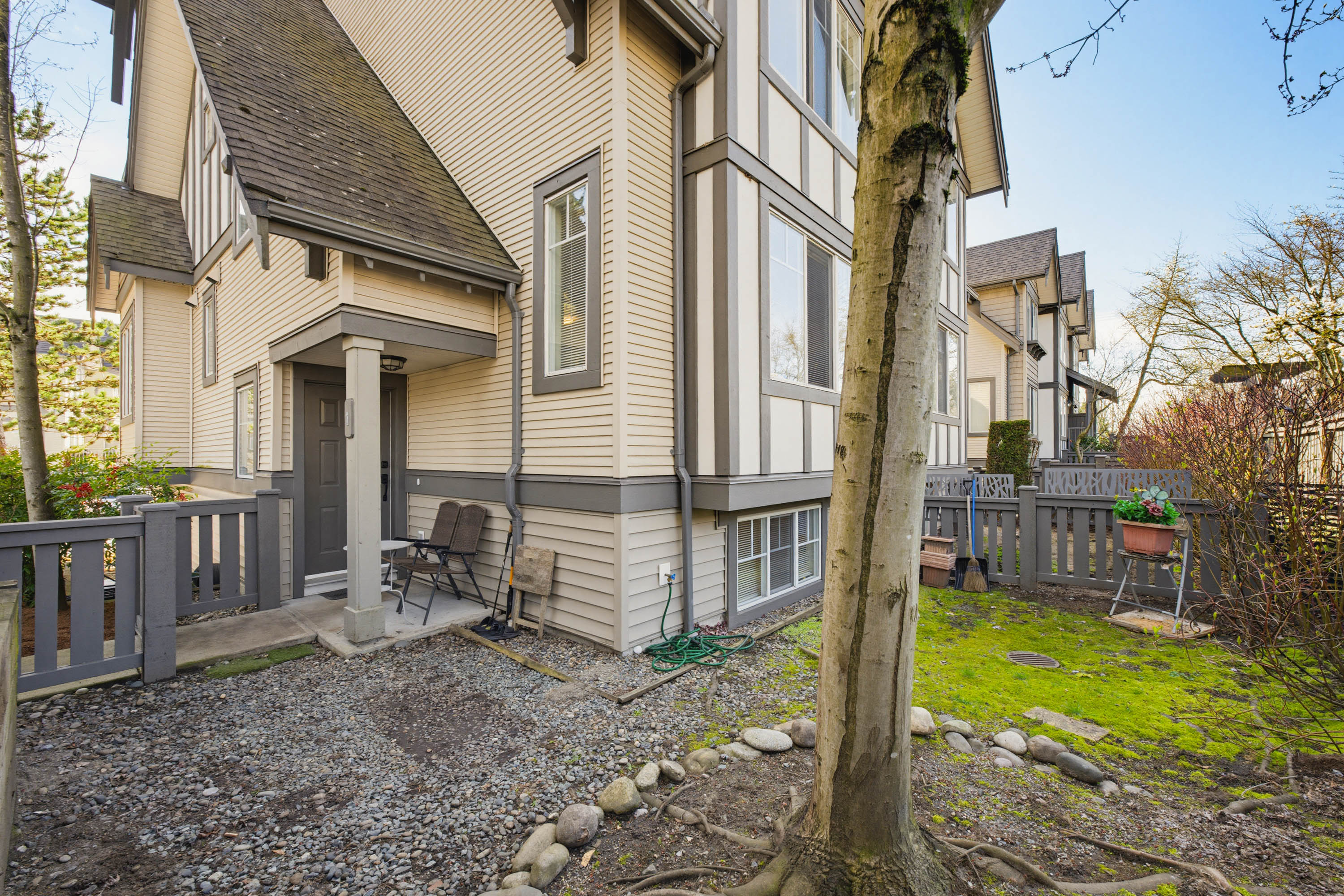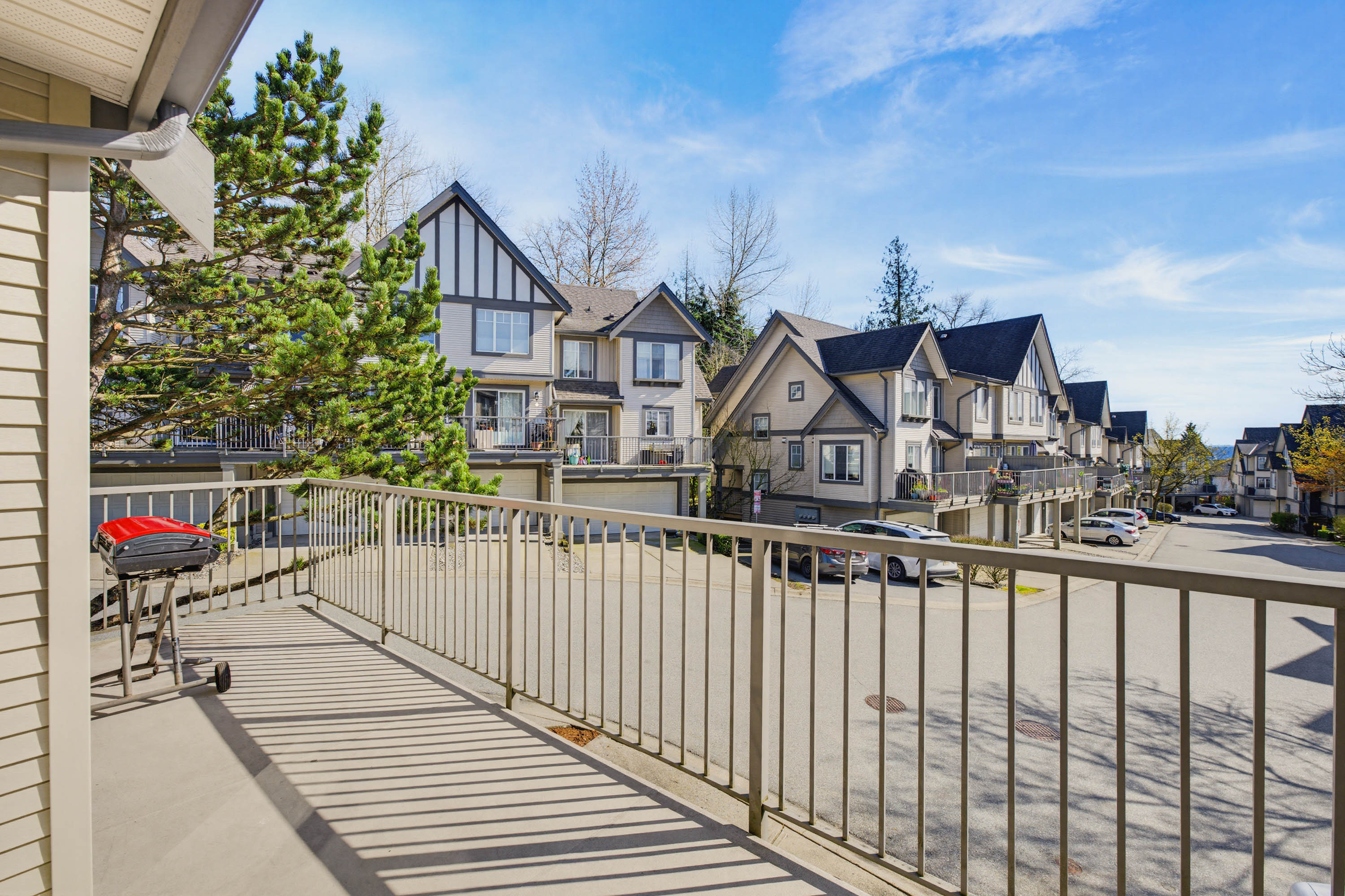 1,636 sq ft, 4 beds, 3.5 baths, END UNIT/duplex style town home from WILLOUGBY HEIGHTS. Home offers 3 beds on upper floor, 4th bed with large window and full bathroom on garage floor. The bright south-facing kitchen features granite countertops, stainless steel appliances, creating a cozy area for both cooking and entertaining. A large balcony enhances the home's outdoor living space. The side by side double garage and double driveway provide parking for up to 4 cars. Mature trees provide the most privacy. Pets allowed with NO size restrictions; rental allowed. Minutes driving to COSTCO,Superstore,Willowbrook Shopping Center. Close to all levels of schools: most popular high school in Langley: R E Mountain, the only school in Langley offers International Baccalaureate Program(IB program).