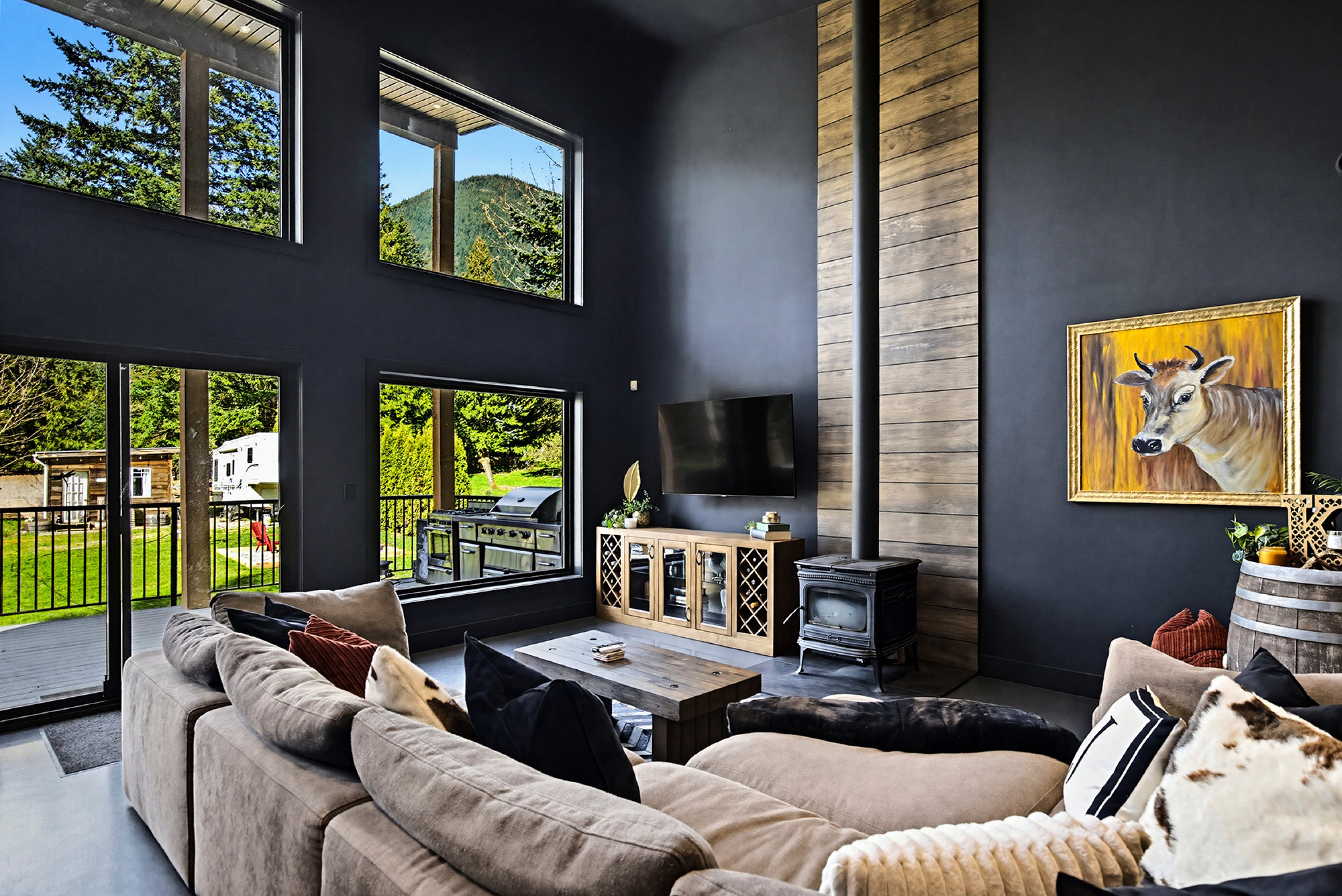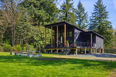 Tucked into a stunning rural setting, this 1300sqft 2 bed, 2 bath + den West Coast contemporary home blends bold design with everyday comfort. Thoughtfully built with exceptional style, it features an open floor plan, high end appliances, radiant in-floor heating, a mini split A/C system and a cozy wood burning stove. Outside, enjoy a massive covered patio, hot tub and endless space for gardening or small animals. A creek runs along the back, with incredible mountain views in every direction. RV parking adds convenience, while nearby hiking, skiing and golfing complete the lifestyle. A truly unique home, finished with exquisite taste throughout.
