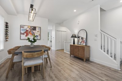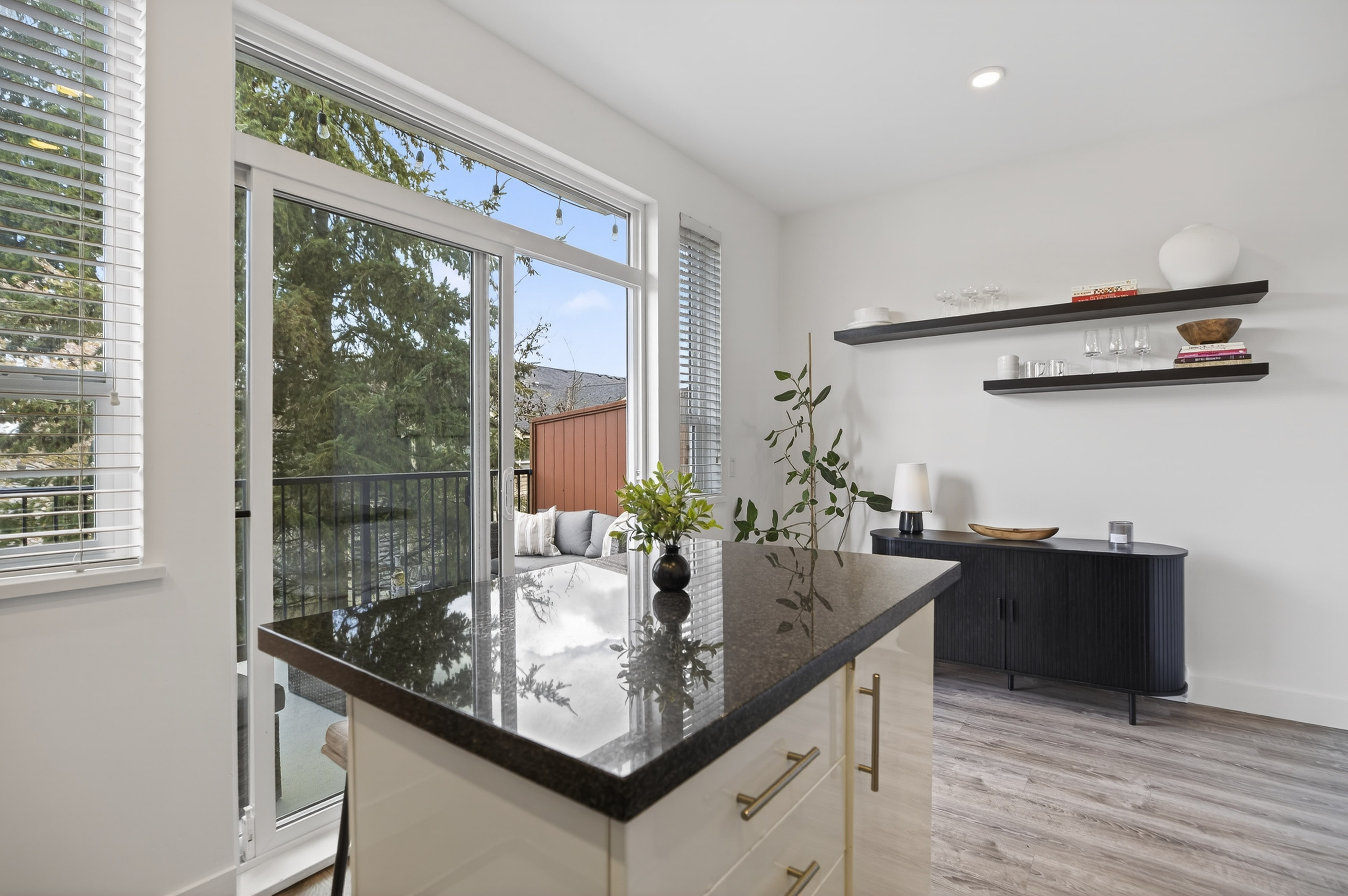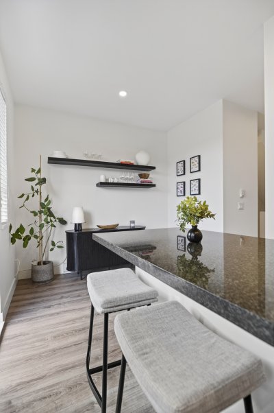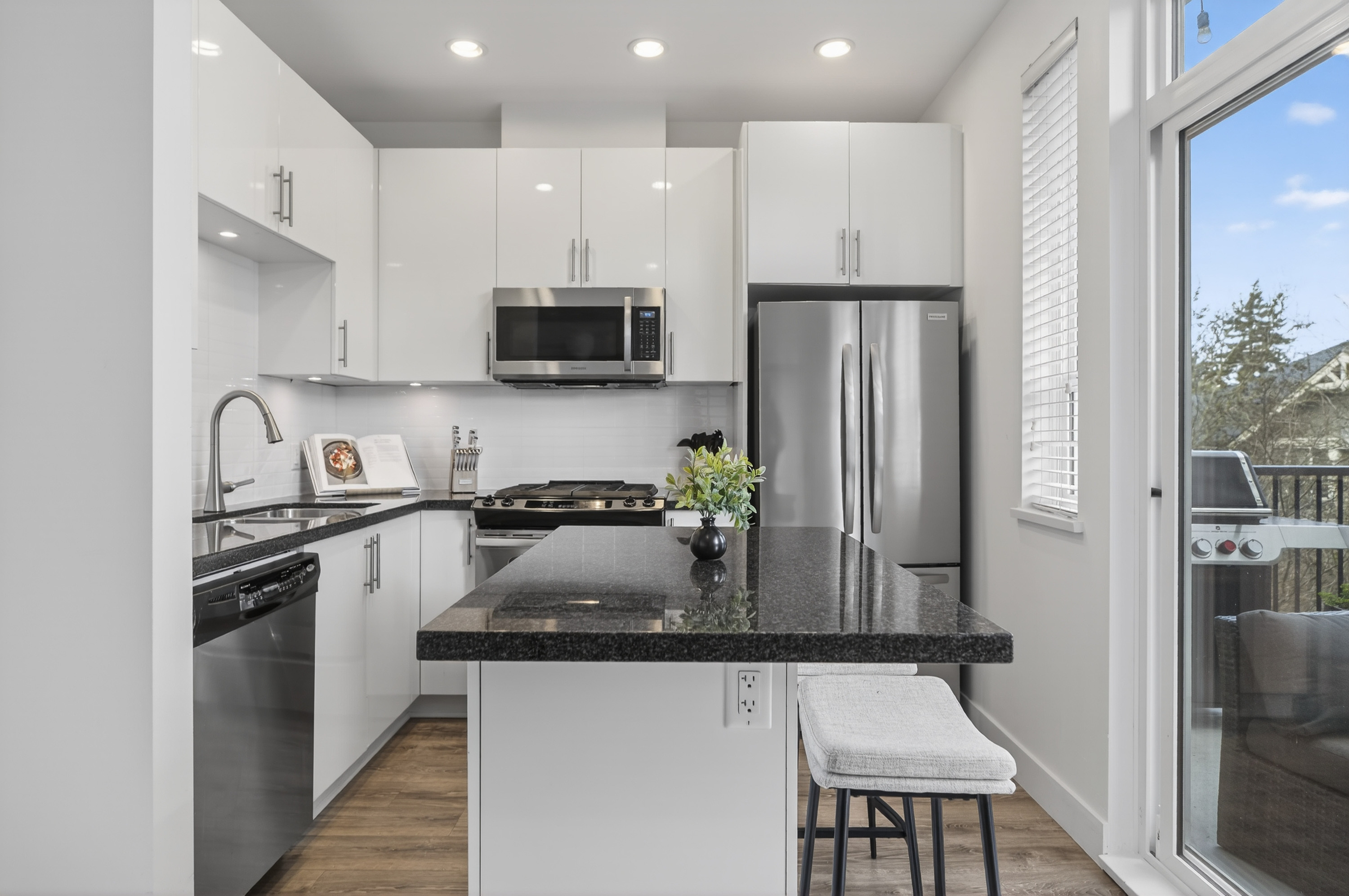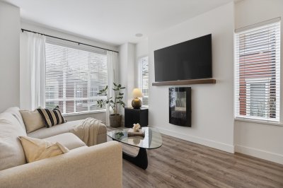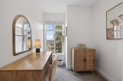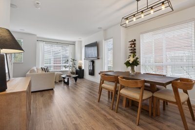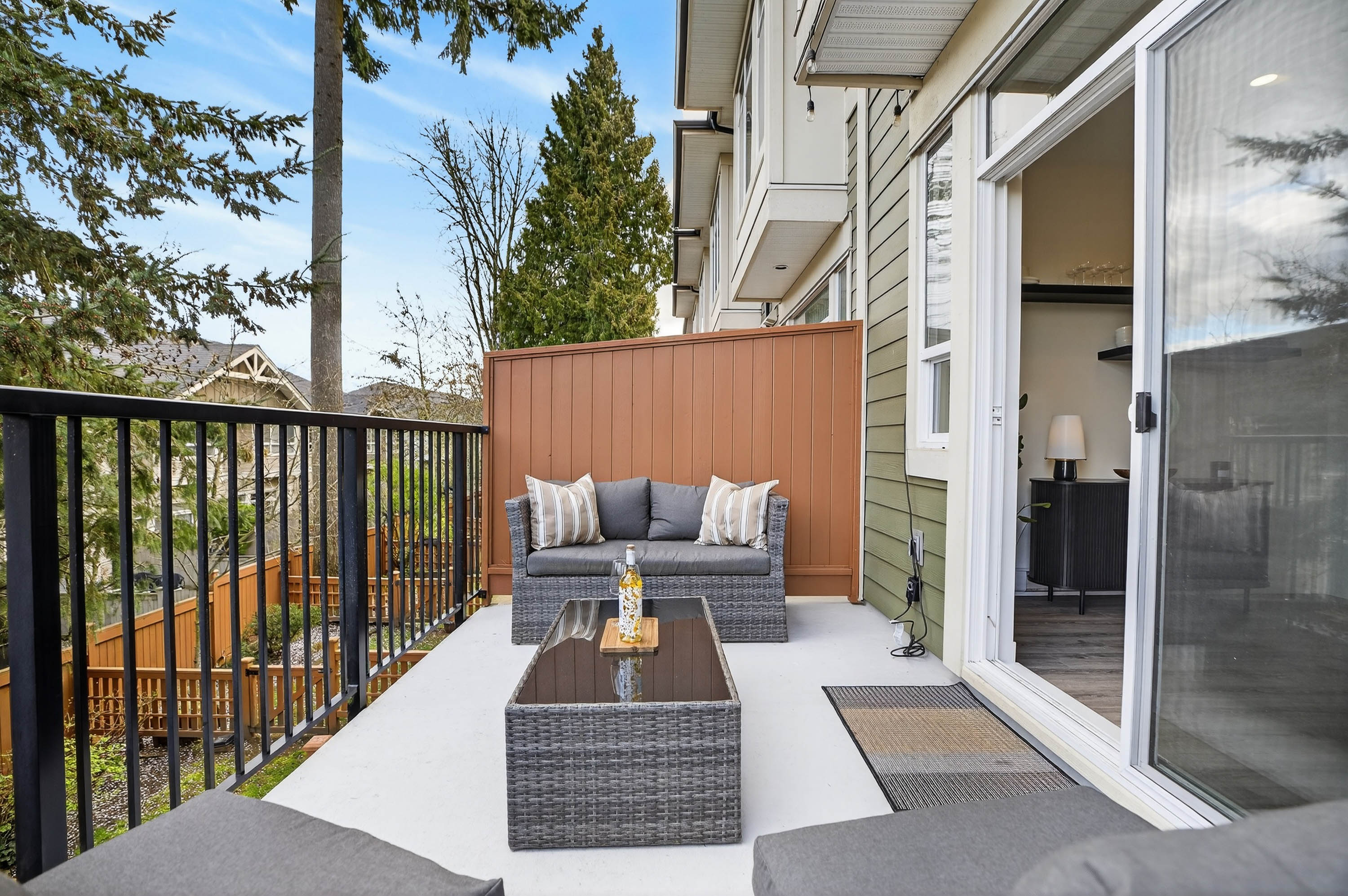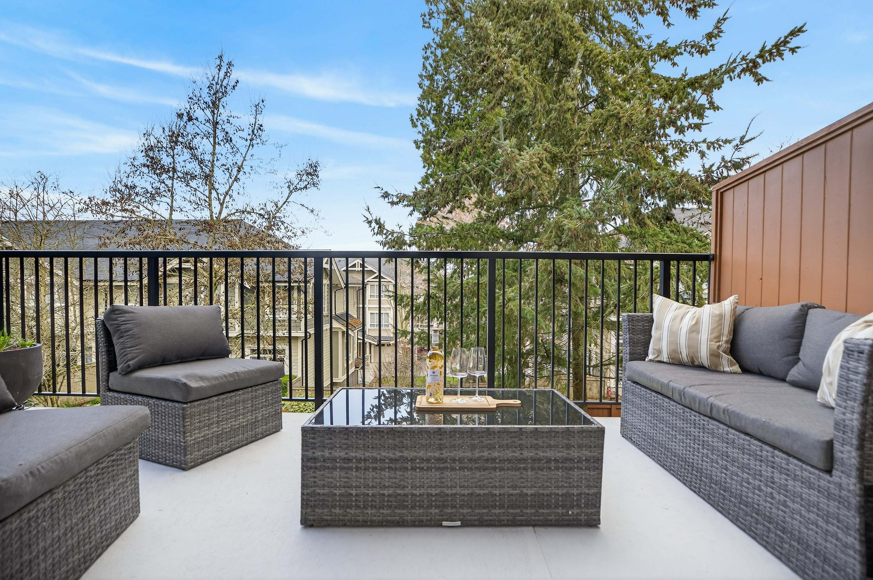 Bright and private end-unit at Toccata offering 2 bed + den and 3 bath in a thoughtfully designed, open-concept layout. Positioned with no homes directly in front or behind, itβs exceptionally private and flooded with natural light. The main level features updated laminate flooring, a powder room, and a well-appointed kitchen with granite counters, stainless steel appliances, gas range, & island with bar seating. Step onto the deck with gas hookup, perfect for outdoor dining and summer evenings. Upstairs offers two spacious bedrooms and a versatile den. Extra-large tandem garage with ample storage. Fully fenced yard and access to a community garden. Enjoy shopping, restaurants, and conveniences just minutes away at Morgan Crossing & Grandview Corners. Pets allowed (2 dogs/cats).