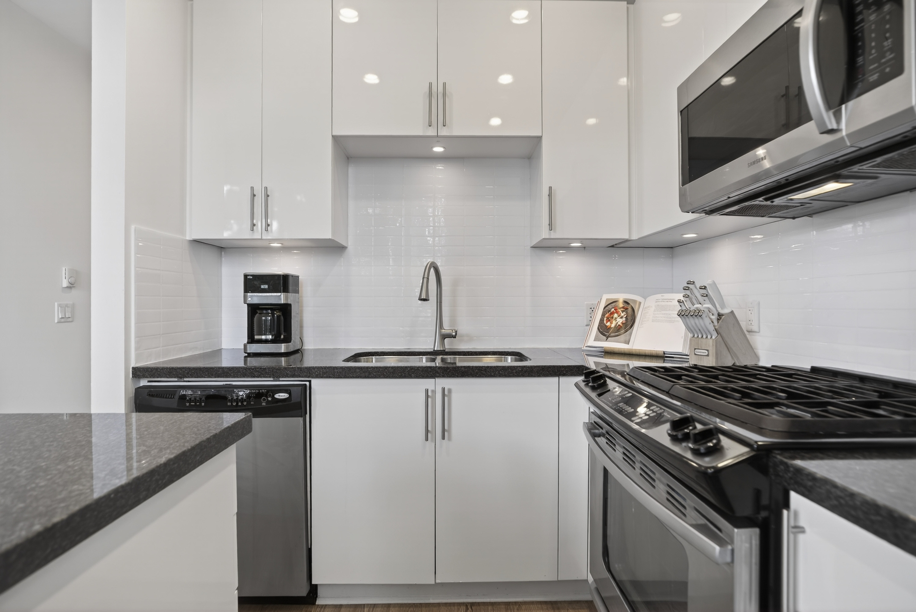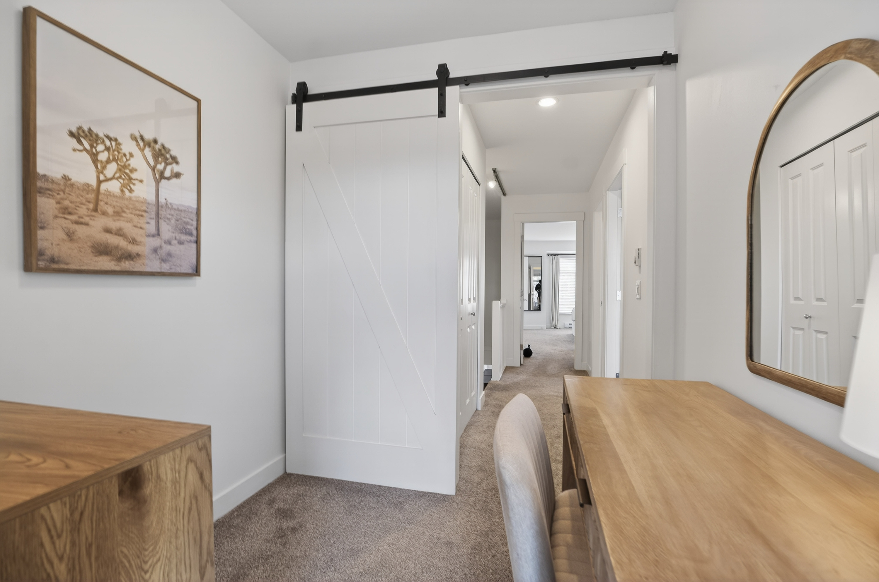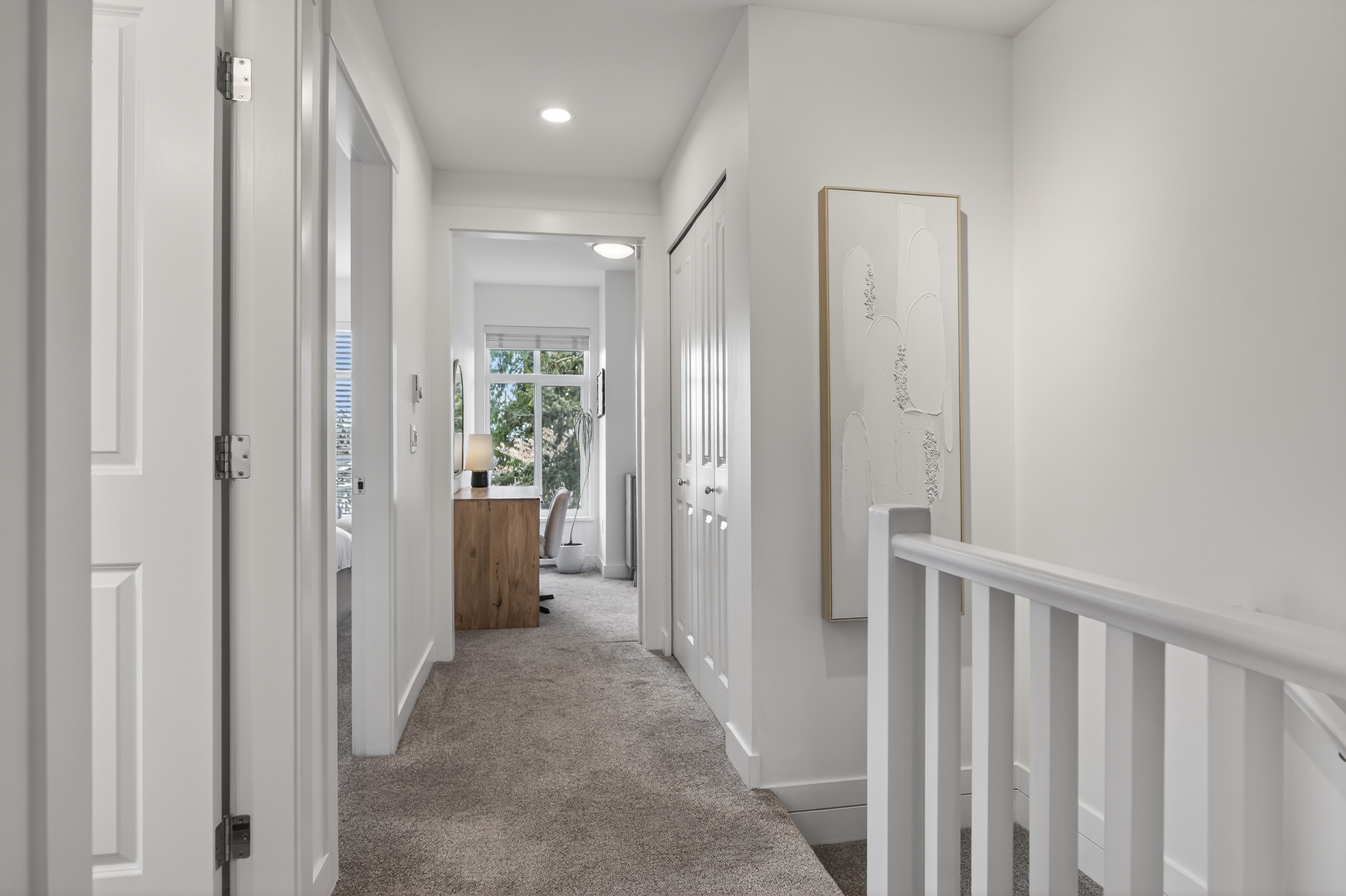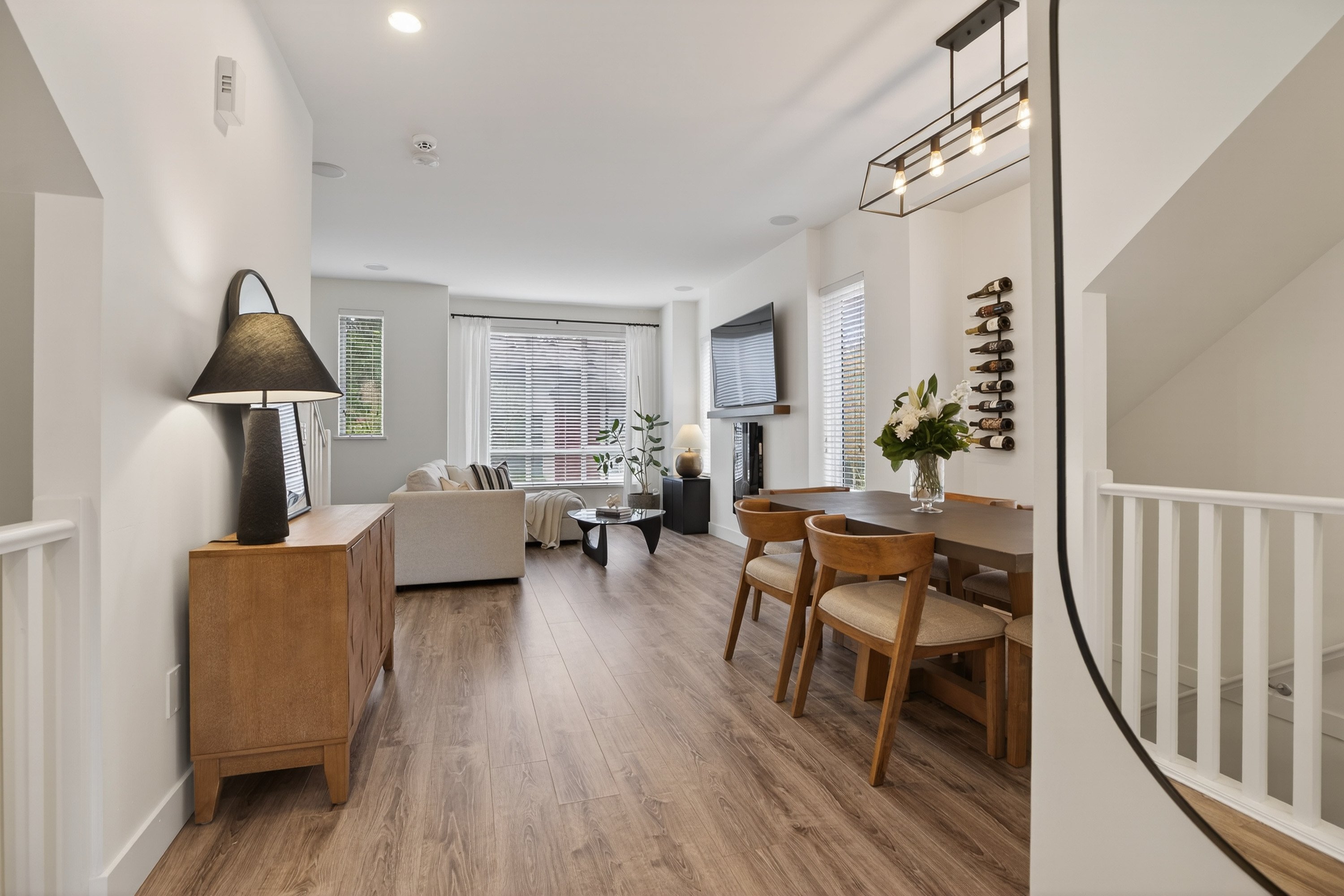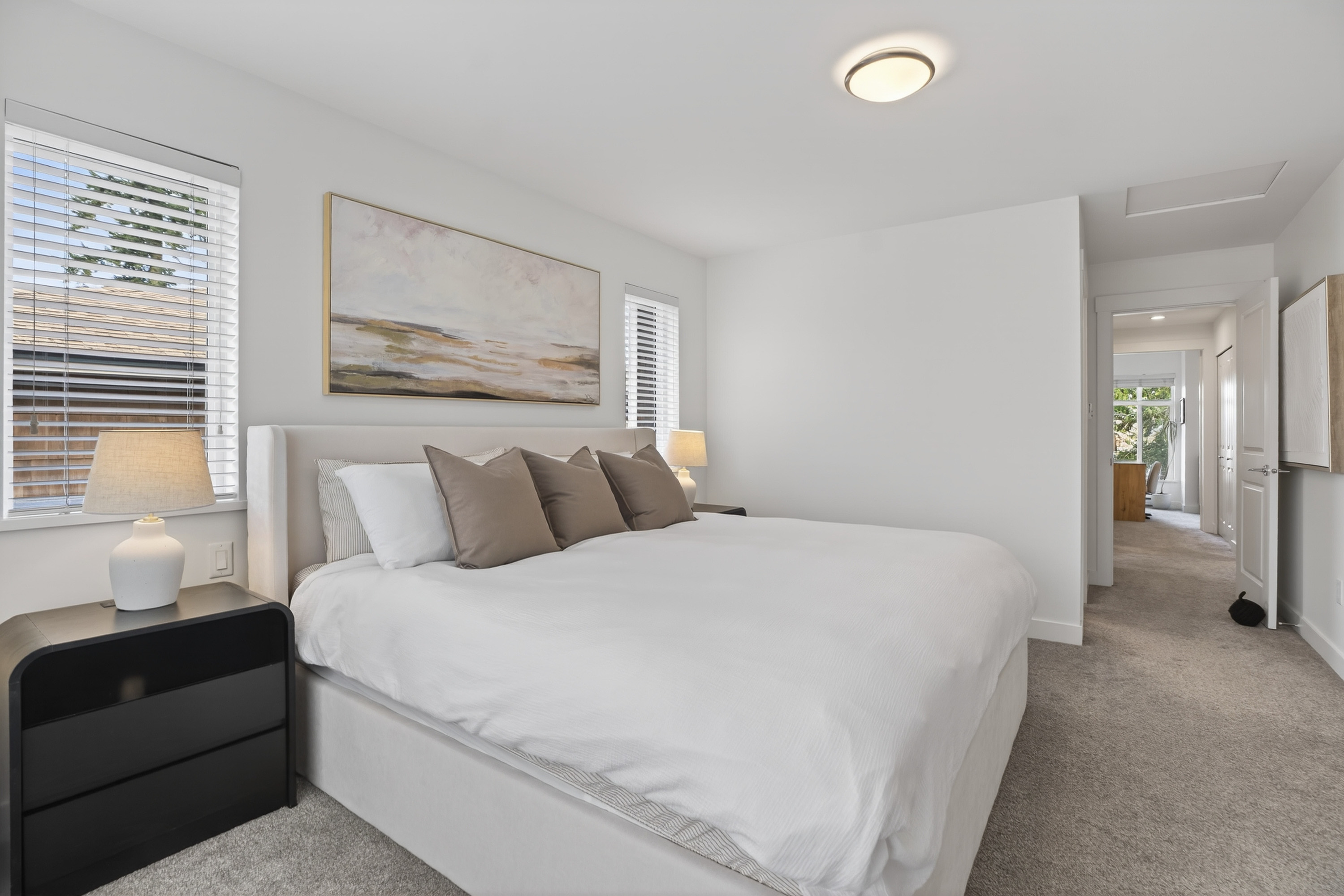 Bright and private end-unit at Toccata offering 2 bed + den and 3 bath in a thoughtfully designed, open-concept layout. Positioned with no homes directly in front or behind, itβs exceptionally private and flooded with natural light. The main level features updated laminate flooring, a powder room, and a well-appointed kitchen with granite counters, stainless steel appliances, gas range, & island with bar seating. Step onto the deck with gas hookup, perfect for outdoor dining and summer evenings. Upstairs offers two spacious bedrooms and a versatile den. Extra-large tandem garage with ample storage. Fully fenced yard and access to a community garden. Enjoy shopping, restaurants, and conveniences just minutes away at Morgan Crossing & Grandview Corners. Pets allowed (2 dogs/cats).