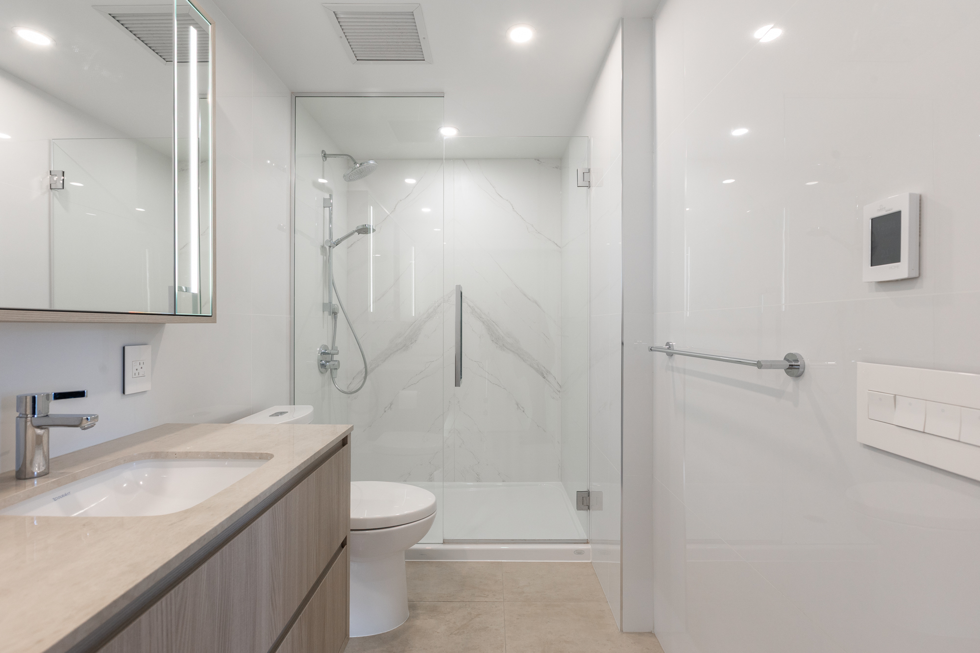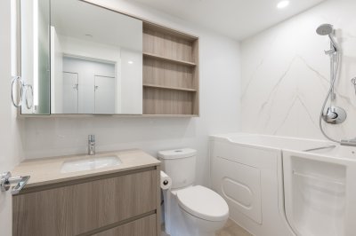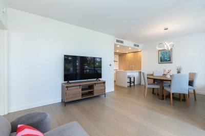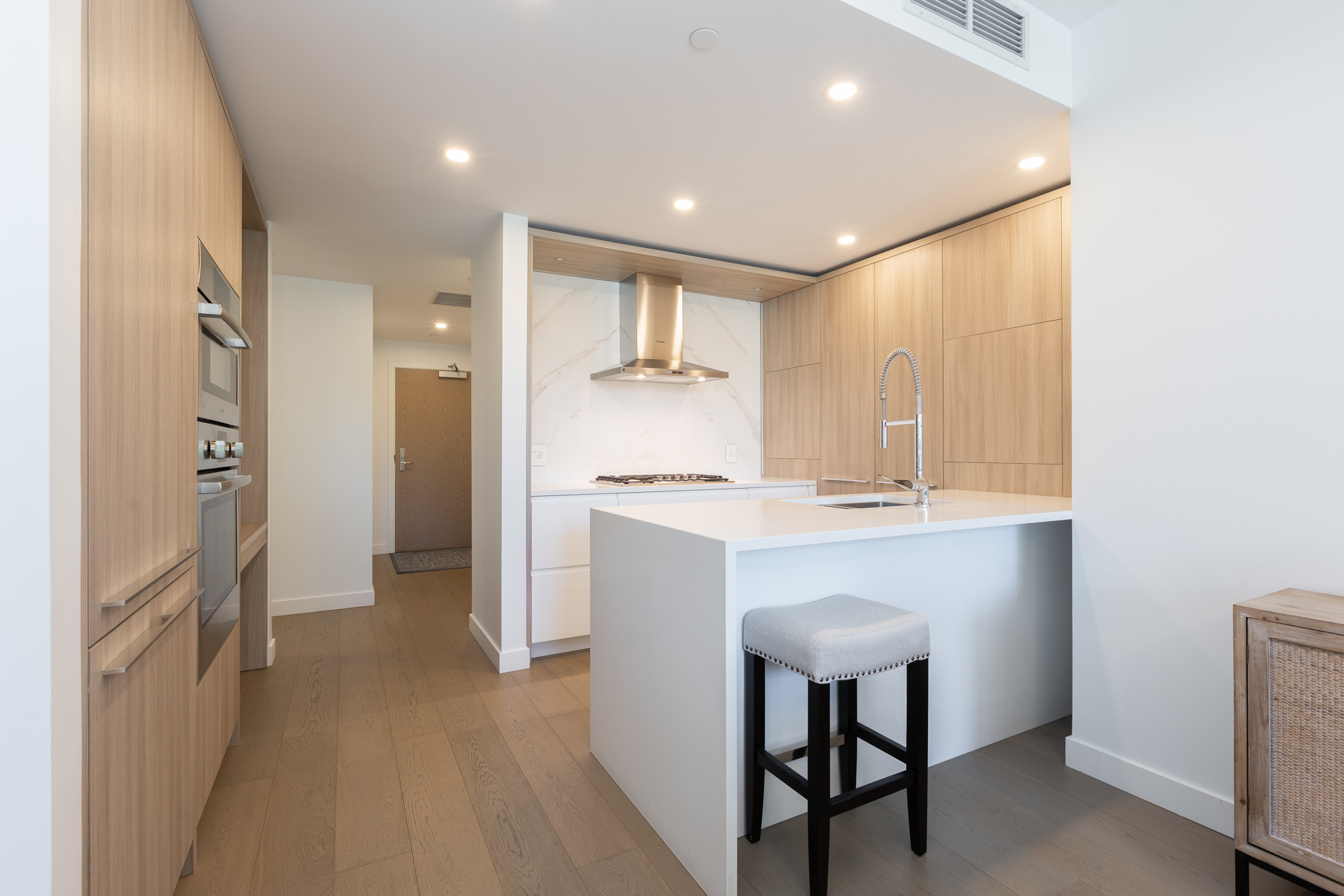 This bright and spacious 2-bedroom home in Miramar Village by BOSA Properties offers modern coastal living in White Rock. Enjoy an oversized private balcony, a thoughtfully designed Italian kitchen and premium Bosch appliances, and a spa-inspired ensuite with radiant in-floor heating, glass shower, and soaker tub. SPECIAL HIGHLIGHT : include an oversized laundry room, a newly installed ultra-quiet, energy-efficient heat pump, a soaker tub with a door for easy and safe access, plus an EV-ready parking stall. Residents have access to resort-style amenities, including an ocean-view pool, 15,000 sq. ft. rooftop terrace, fitness centre, and elegant lounge—offering comfort, convenience, and luxury in one. DON't MISS THIS UNIQUE UNIT! Private viewing only.