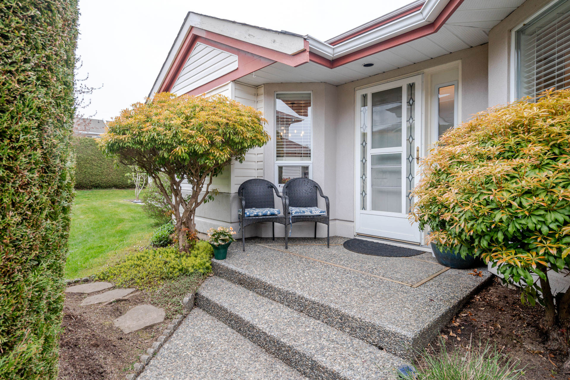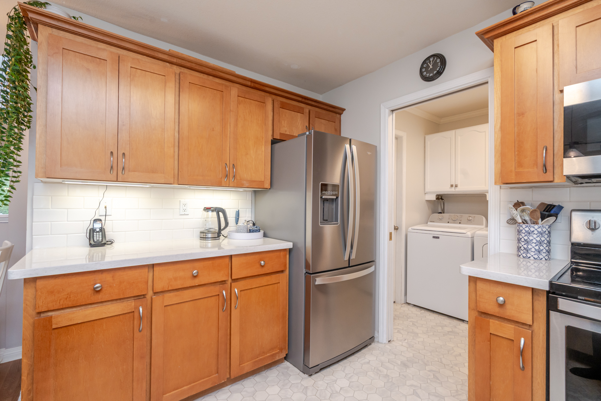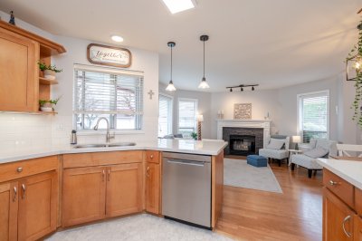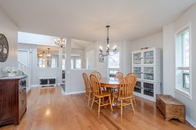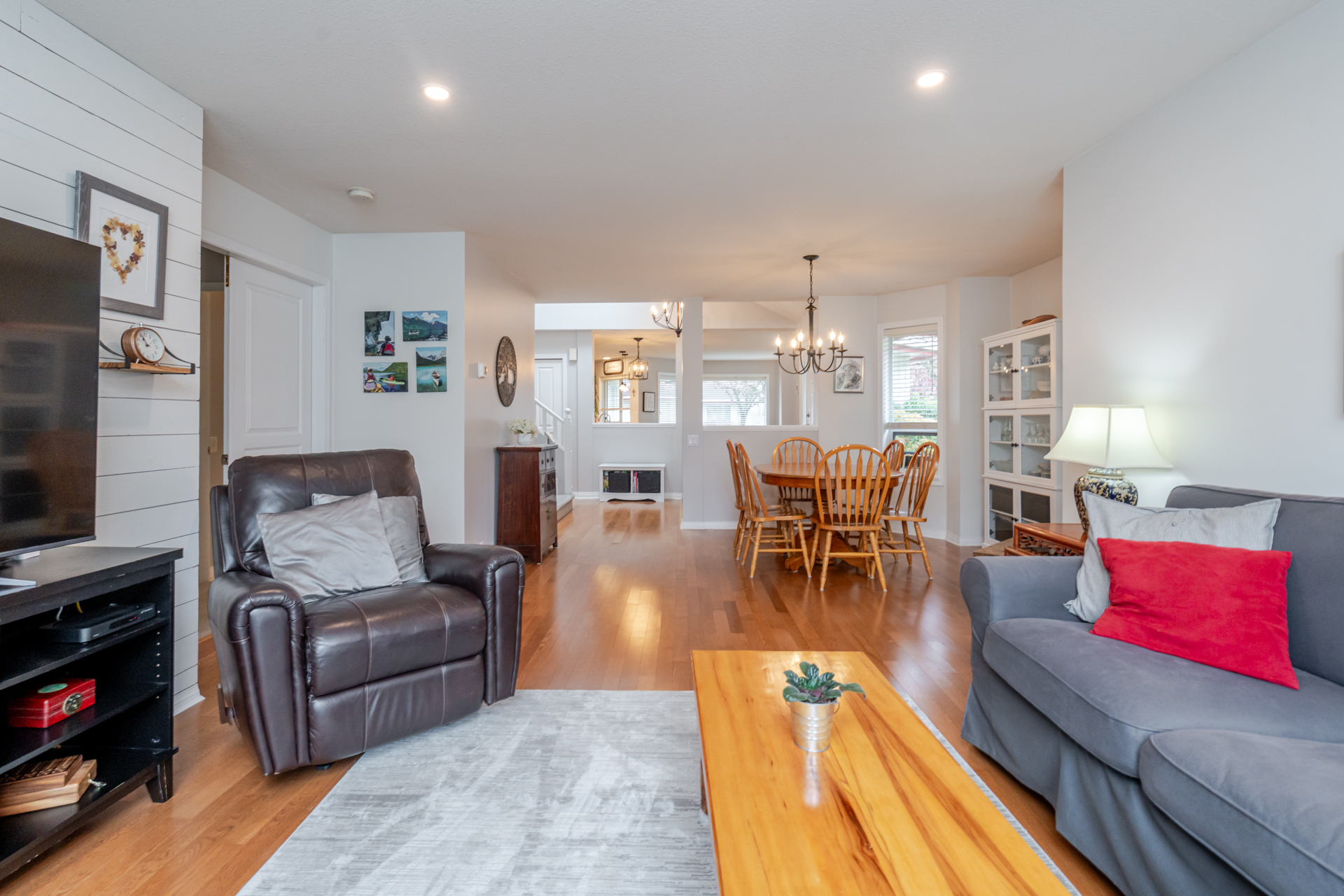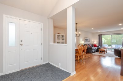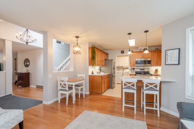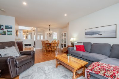 Welcome to Elwood Estates, a well-maintained gated townhouse community in Abbotsford. This updated 3-bed, 3 bath home features a stylish updated kitchen with Whirlpool stainless steel appliances, maple cabinetry, and Silestone quartz countertops throughout, including the bathrooms. The open-concept main floor offers bright living and dining spaces, a cozy family room with gas fireplace, and a spacious primary bedroom with walk-in closet and 5-piece ensuite. Upstairs features two large bedrooms and a versatile landing which could be a small library. Additional highlights include main floor laundry, updated lighting, and an energy-efficient Bosch on-demand system for in-floor heating and continuous hot water. Well-appointed complex with clubhouse, fitness area, and social spaces.
