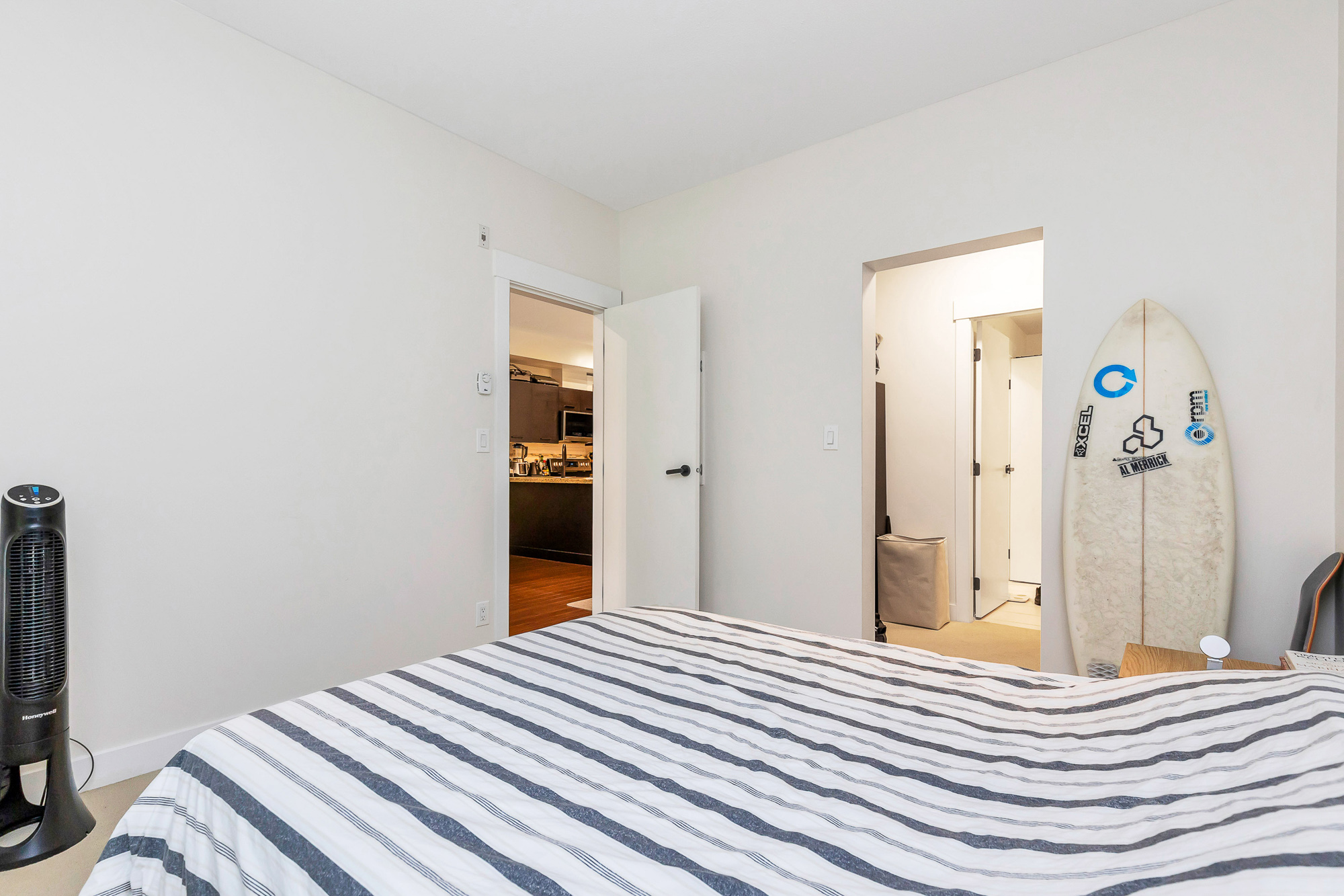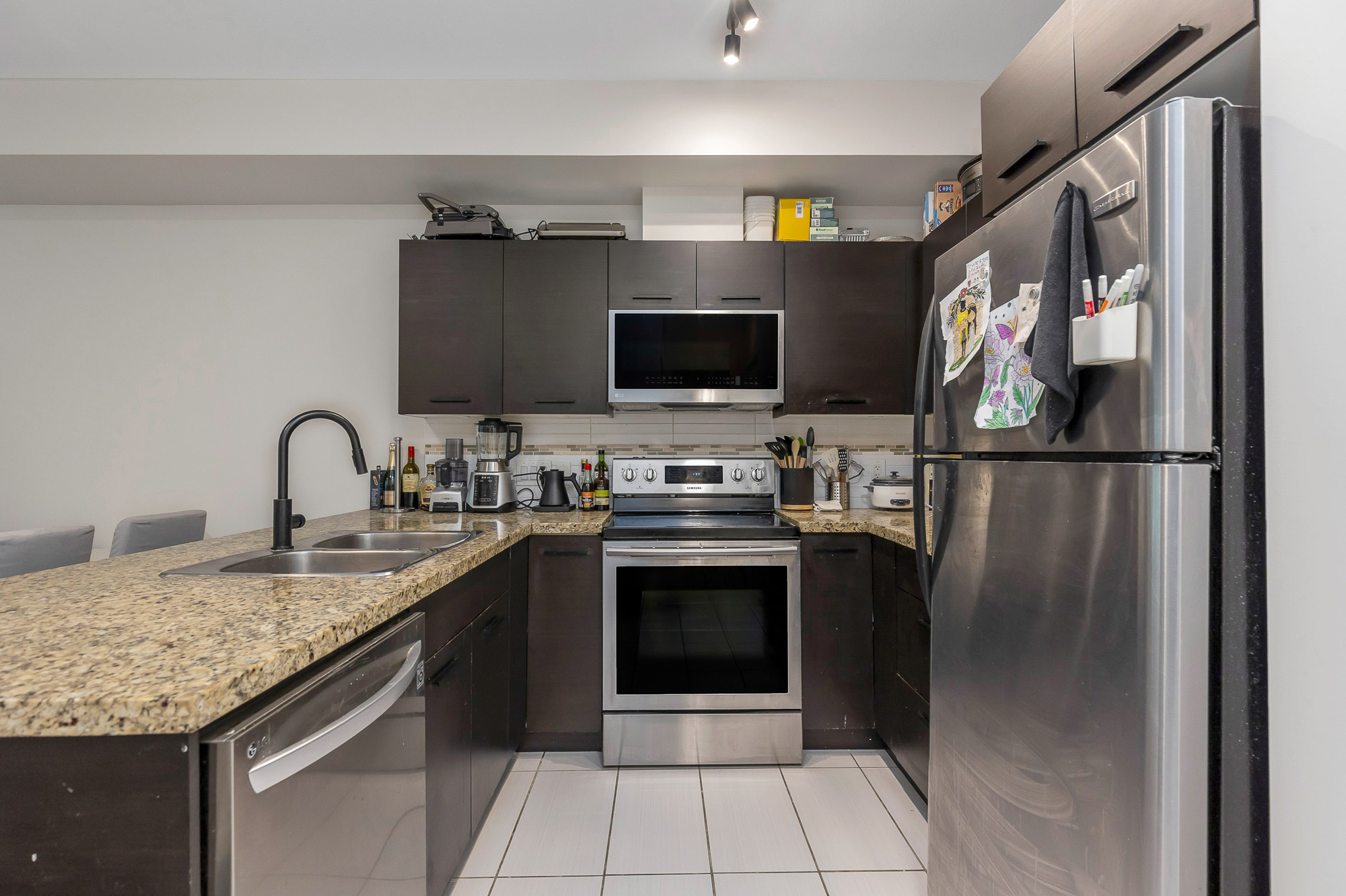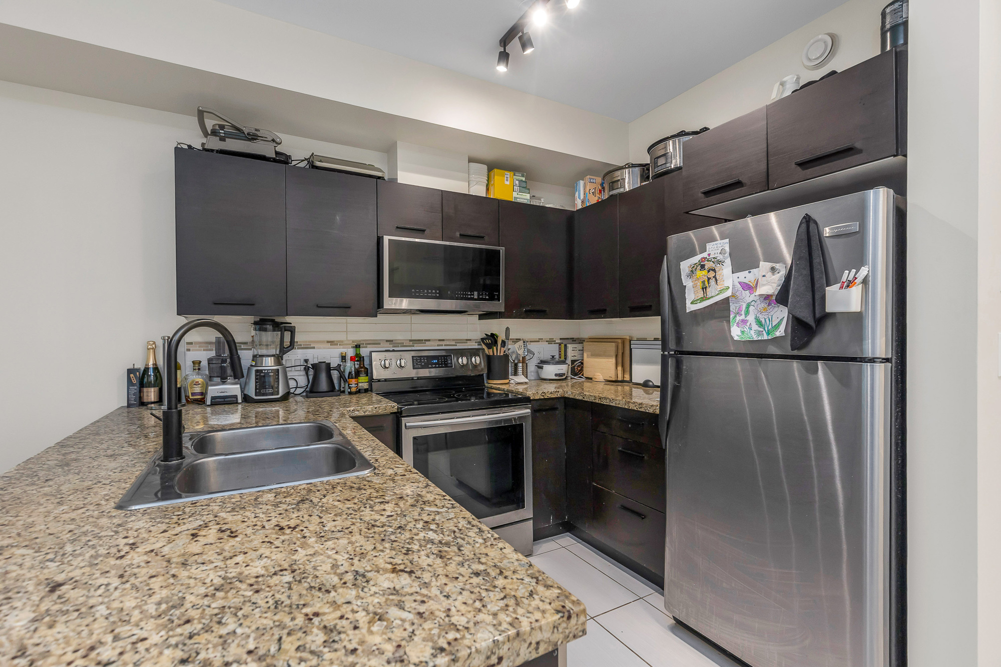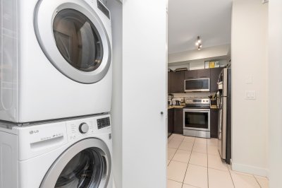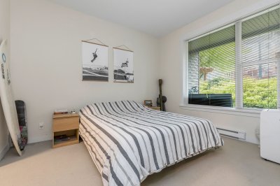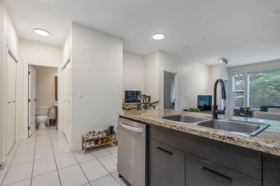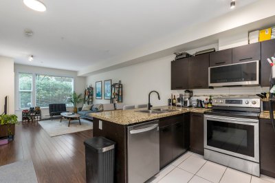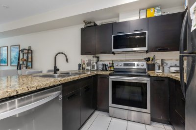 Excellent opportunity for first time home buyers or investors!! This lovely home located on the ground floor has an open kitchen with granite counter tops. SS appliances include a dishwasher, microwave hood fan, fridge and stove. Also a washer and dryer. The bedroom is Spacious (will fit a king bed) with a walk a through closet to the bathroom. Nice size private gated concrete patio facing South on quiet Holland Ave giving you access to your home. Street parking right outside your patio gate!! One gated underground parking and storage locker. Fantastic location!! Walk to McCallum Crossing Strip Mall for restaurants and shopping. Walk outside the building entrance to Subway and a coffee shop right next door!! Amenities include a gym and clubhouse. 1 Cat allowed. MTM tenancy paying $1850