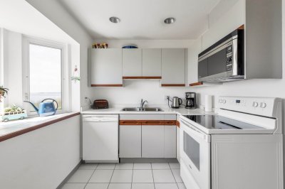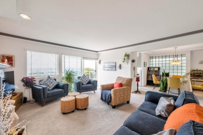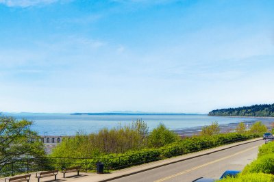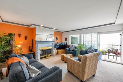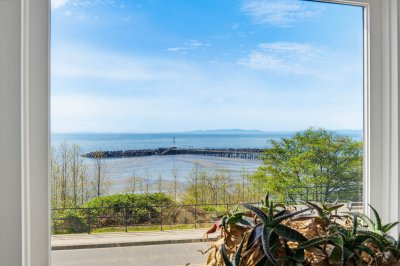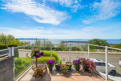 A view is worth a Million $$’s! Spectacular unobstructed 180 degree Ocean and beach views! Spacious 2 bedroom condo with a great floor plan, with the main living area that is focussed to take in the panoramic ocean views. A bright kitchen with a bay window and spacious dining room. The living room has large windows and a cozy gas fireplace with sliding doors to a wonderful sundeck (9’8 X 9’5) to enjoy your morning coffee and fabulous sunsets. The bedrooms are large, the primary boasting a full ensuite. The maintenance fee includes your heating (hot water radiant). Building upgrades include: rain-screened 2011, hardiplank siding, vinyl windows and retaining wall. This is a lifestyle not just a home. Park the car and walk to cafes, restaurants and shops. Enjoy walks along the beach everyday!